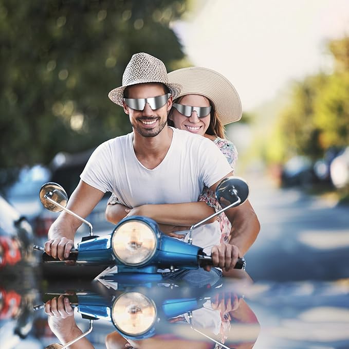 - Perfekte Sonnenbrille für jede Situation - Diese coole Sonnenbrille mit exzellentem Sonnenschutz kann bei verschiedenen Aktivitäten auf dem Kopf bleiben! Und sie ist auch ein tolles Mode-Accessoire für den Alltag und Outdoor-Aktivitäten, wie z.B. als Foto-Requisite für Musikfestivals, Rave-Partys, Bergsteigen und Wandern, Autofahren, Radfahren, Einkaufen, Reisen, Sonnenbaden am Strand sowie andere Outdoor- oder Wassersportarten.