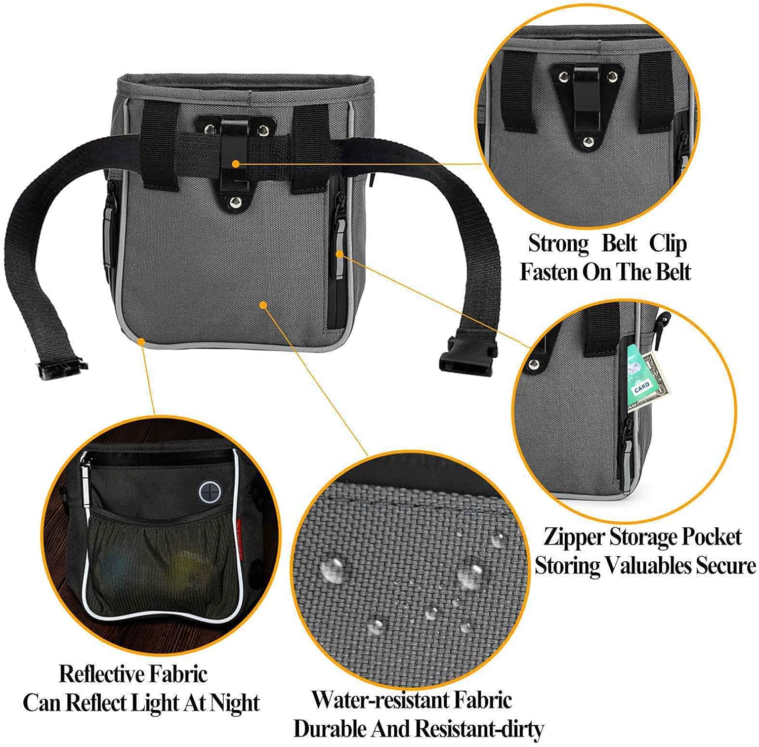 - ã€�Hochwertige Hundeleckerli-Tasche】 Unsere Leckerlibeutel sind aus hochwertigen wasserfesten und reißfesten Stoffen hergestellt. Die Innenseite der Hochtemperatur-Verklebung läuft kein Wasser aus, sie kann vollständig herausgezogen werden, wodurch sie sehr leicht zu reinigen ist. Reflektierende Streifen auf der Hundetrainingstasche halten Sie besser sichtbar unter Licht und sicher beim Spaziergang in der Nacht.