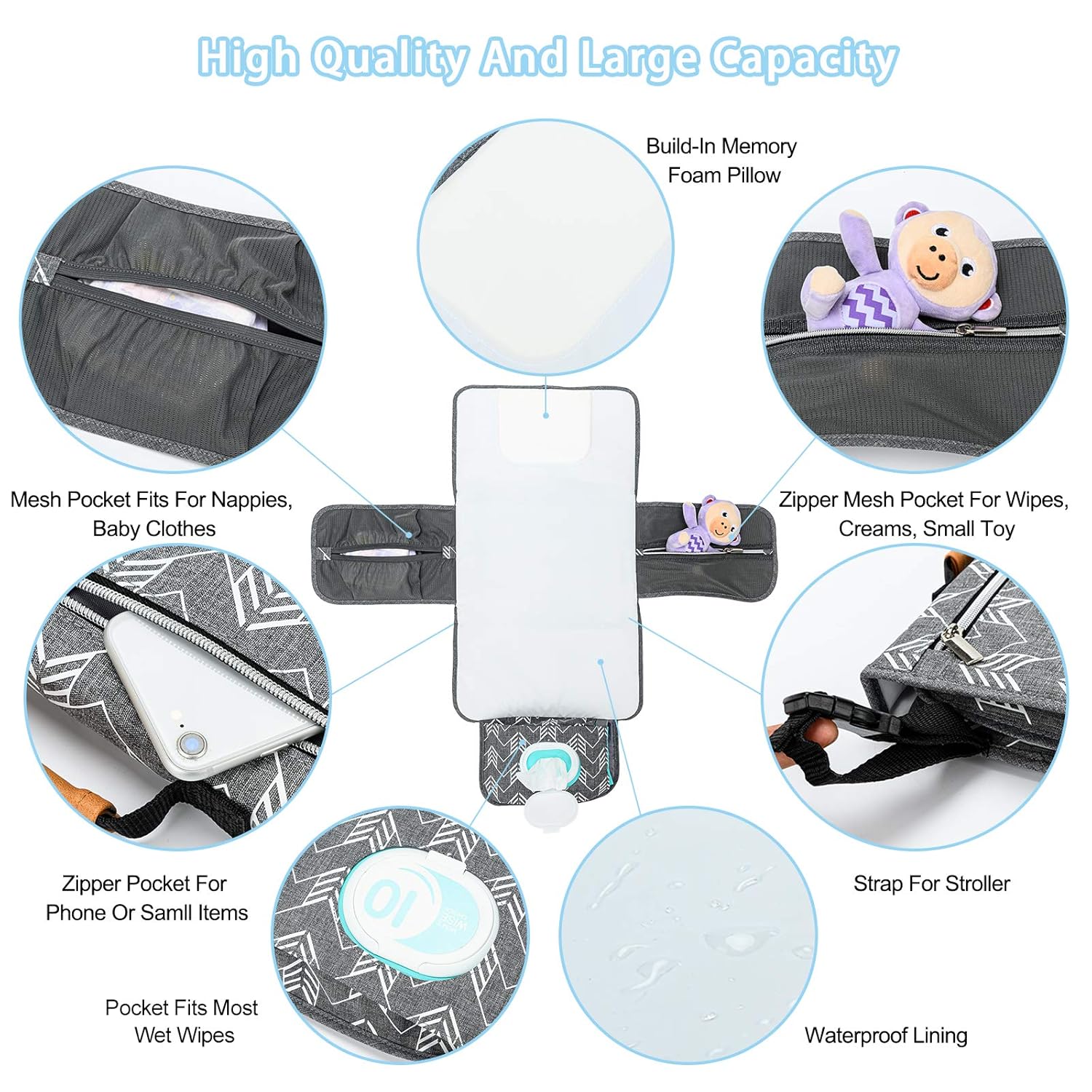 Tragbare Wickelunterlage, Baby Reise Wickelunterlage mit Aufbewahrungstaschen für Kleinkinder Säuglinge & Neugeborene, Grau
